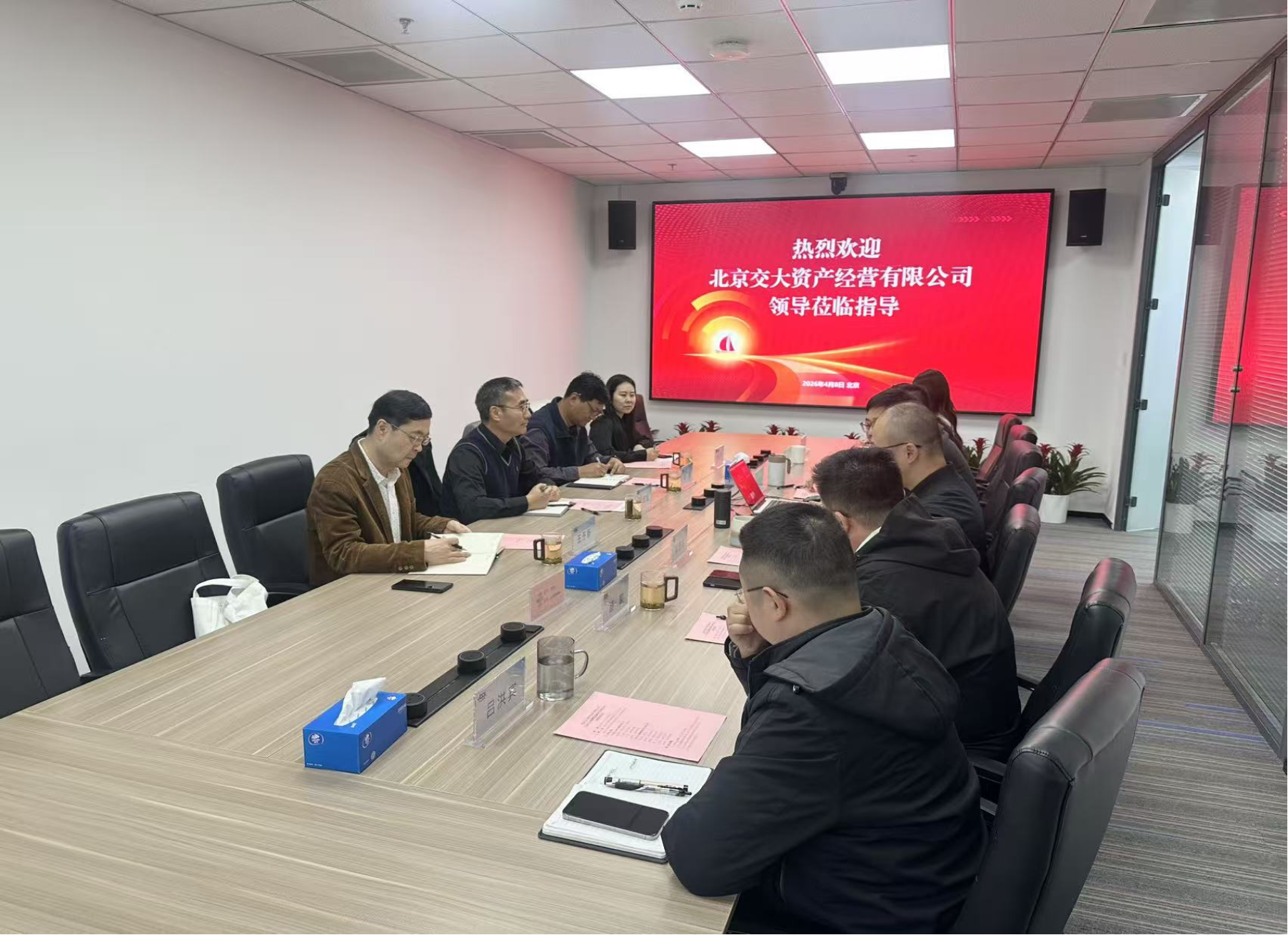 为深入了解校企合作科技成果转化企业发展成效,精准助力企业科技创新与产业升级,2026 年 4 月 8 日下午,资产公司党总支书记、总经理李绍斌一行专程赴北京交大麒麟慧通科技有限公司(以下简称 “交大麒麟”)开展调研交流工作。交大麒麟董事长樊文刚及公司核心管理团队陪同调研。